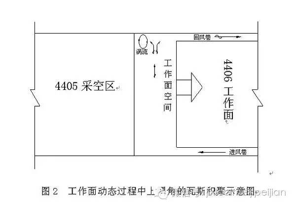 1、井生產(chǎn)過(guò)程中,采煤工作面上隅角作為采空區(qū)漏風(fēng)的交匯點(diǎn)和生產(chǎn)中不斷暴露的新鮮煤壁擴(kuò)散出來(lái)的大量瓦斯,在上隅角處形成渦流,造成瓦斯積聚。